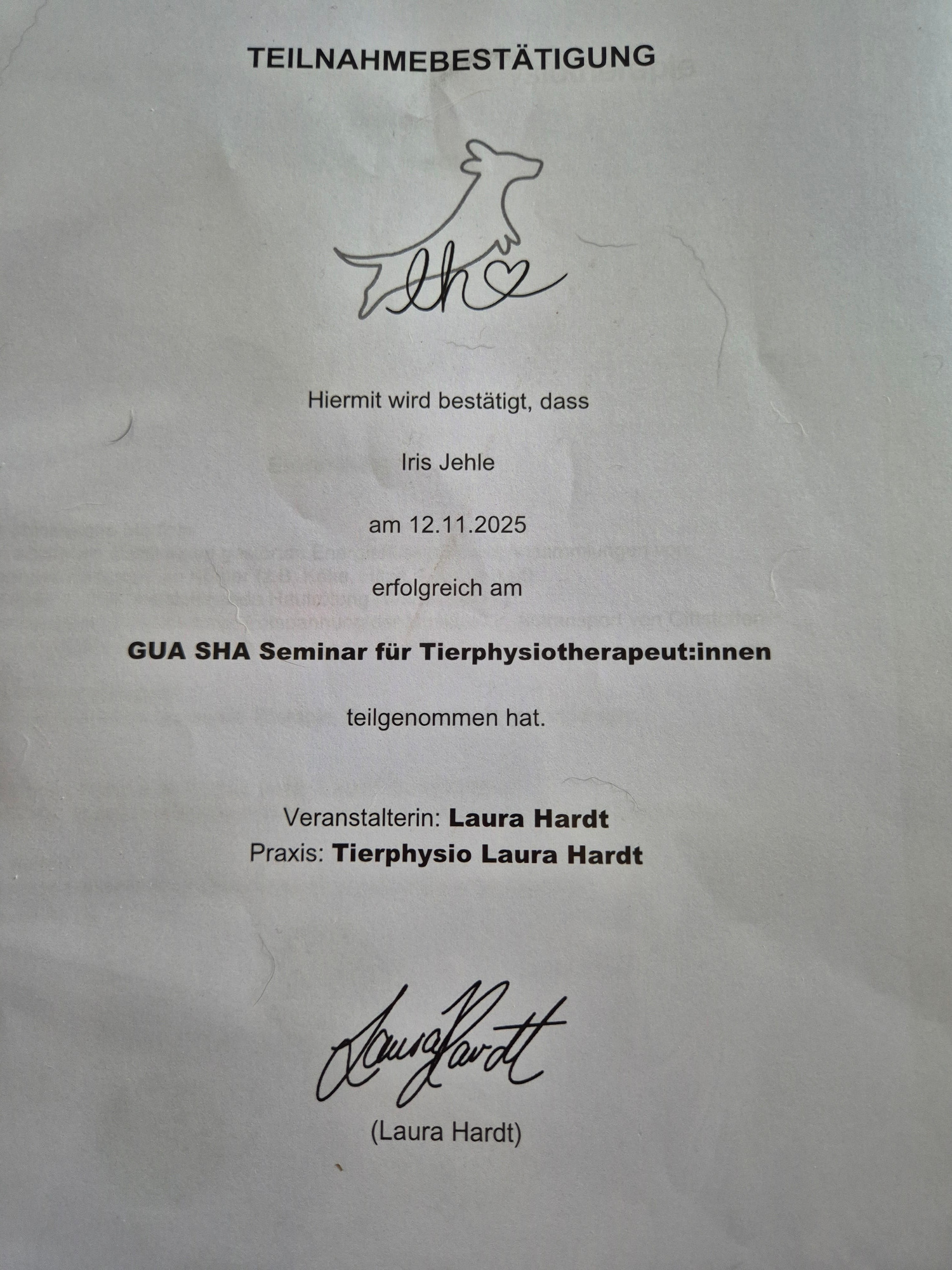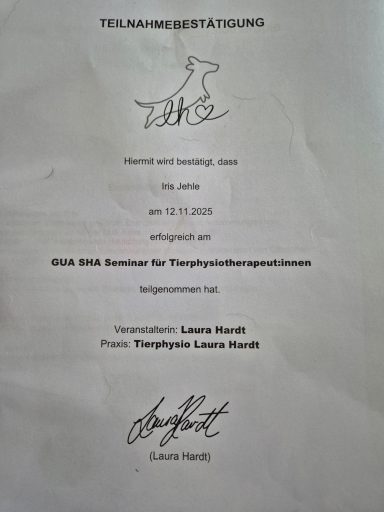 Abgeschlossene Ausbildung zur Tierphysiotherapeutin & TCM für Tiere